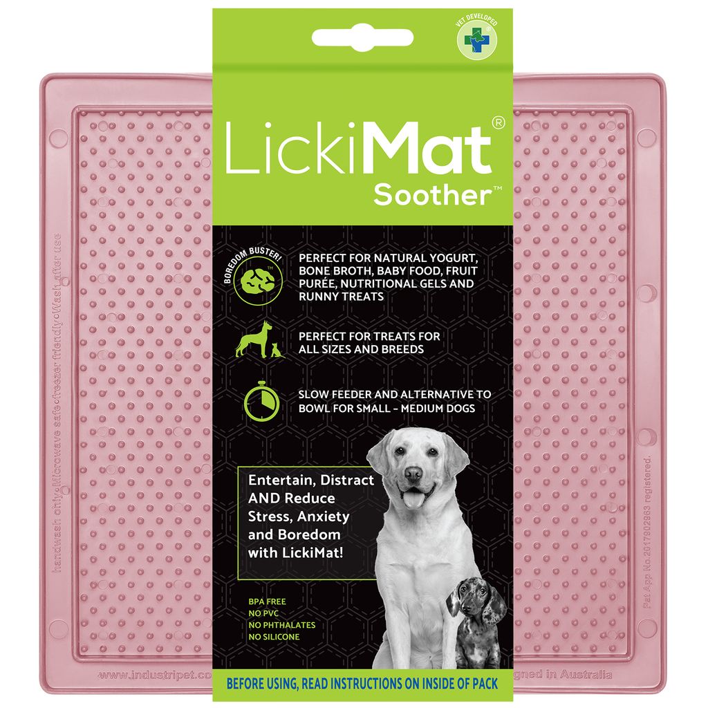 The LickiMat Soother, with its brush nub design, is perfect for soft and liquid treats like yogurt, purees, gravy or liquid treats and foods.